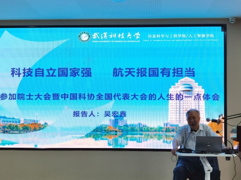 吳宏鑫結(jié)合5月28日在北京參加兩院院士大會、中國科協(xié)第十次全國代表大會第二次全體會議時的感想,以及他對人生的一點(diǎn)體會展開講述。吳宏鑫分別從上大學(xué)愛國愛黨、處逆境學(xué)習(xí)為上、恩師指專業(yè)方向、要創(chuàng)新敢于擔(dān)當(dāng)、為理想不爭功獎這五個方面作報(bào)告。