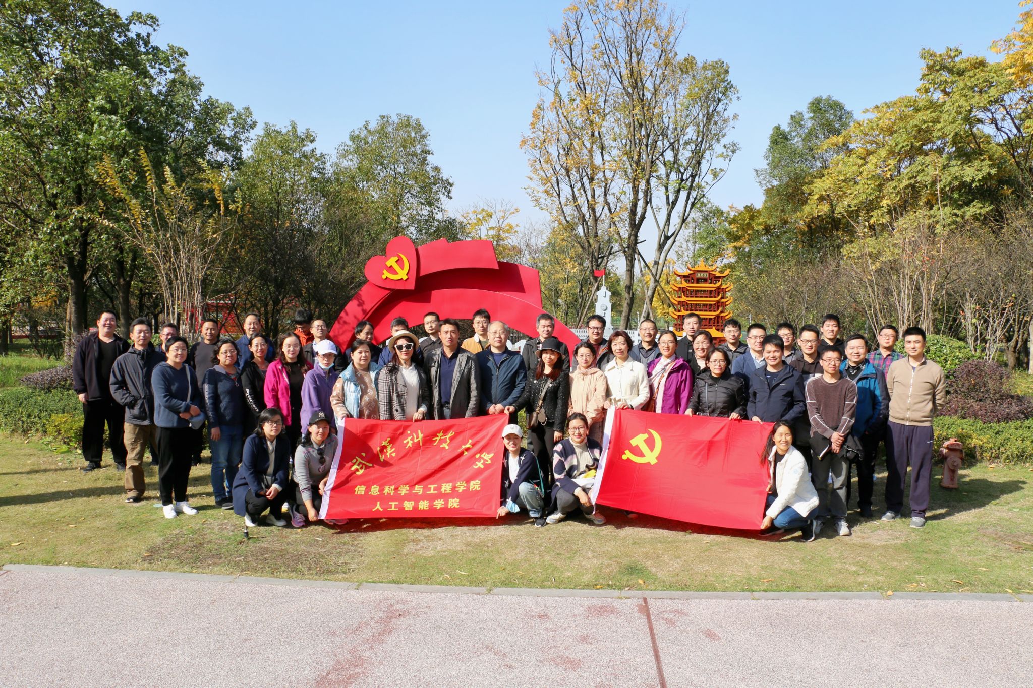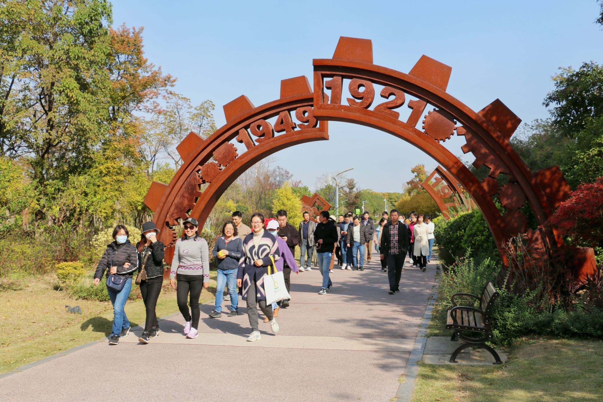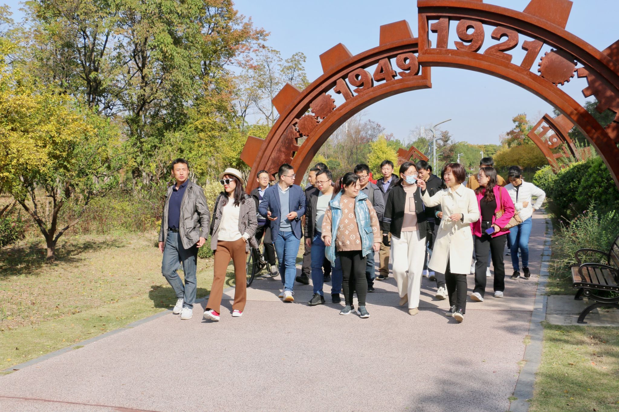 在初冬溫暖的陽(yáng)光下,老師們漫步在萬(wàn)里無(wú)云的藍(lán)天下、欣賞多彩的江灘風(fēng)景,感受了溫暖的冬日陽(yáng)光。 在江灘紅色教育基地,老師們學(xué)習(xí)回顧黨的發(fā)展壯大歷史,感受建黨建國(guó)以來的巨大變化。