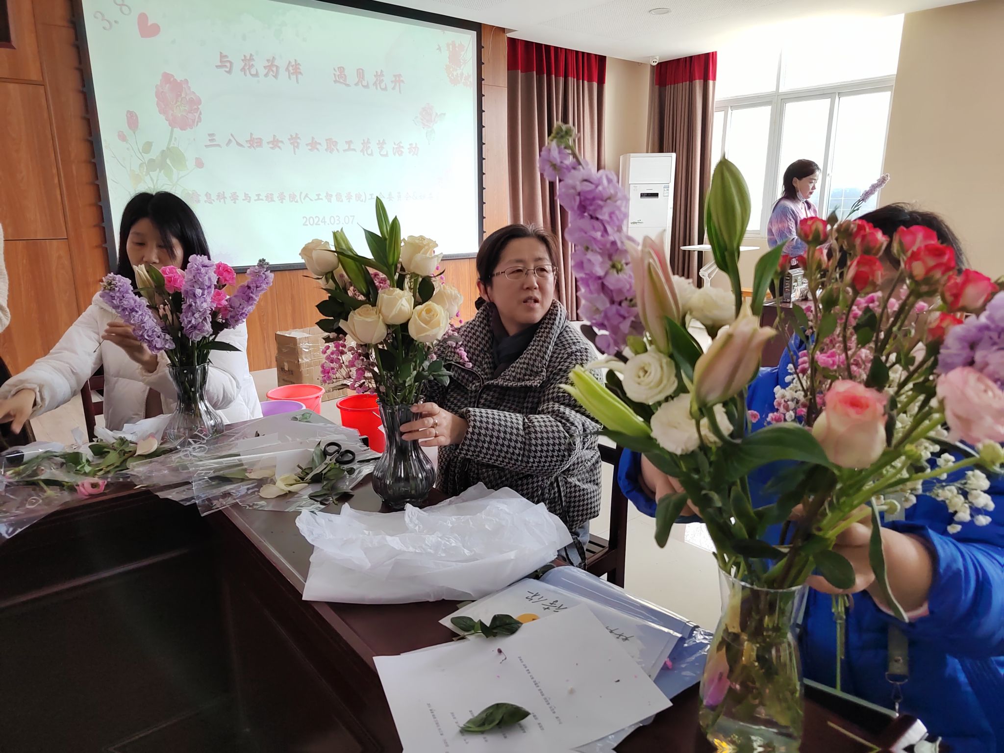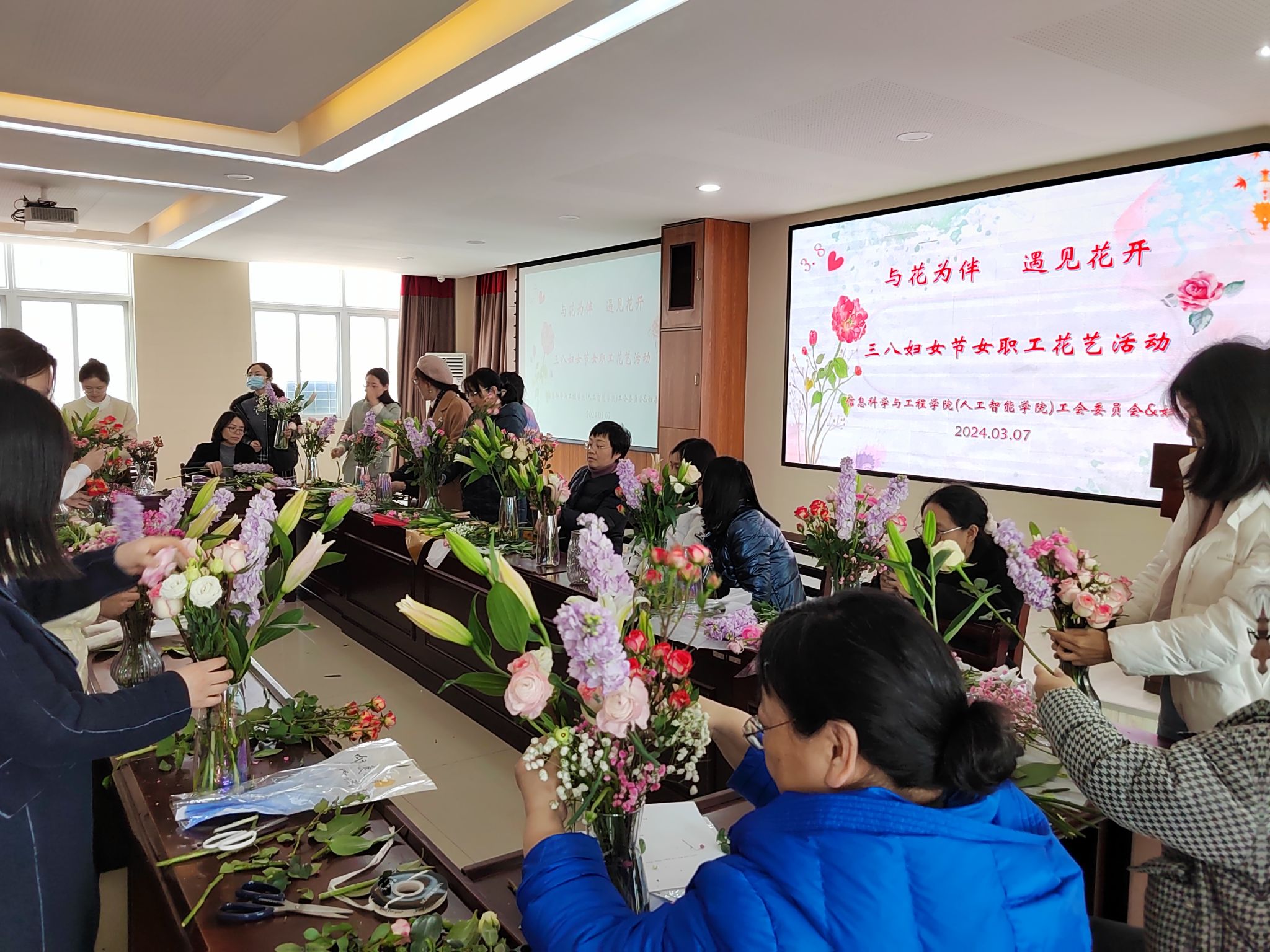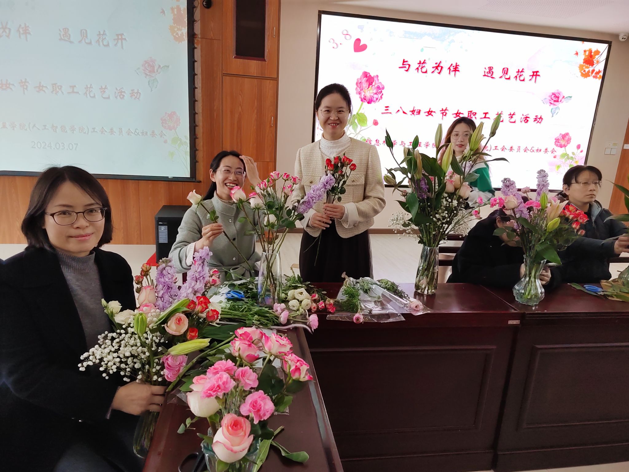 3月7日下午2:30,在第114 “三八”國際婦女節(jié)即將到來之際,為了更好地展現(xiàn)女性風采,以健康向上、充滿活力的精神面貌樹立女性形象,信息科學與工程學院組織開展了“與花為伴,遇見花開”花藝活動,學院女職工們一起共慶節(jié)日!